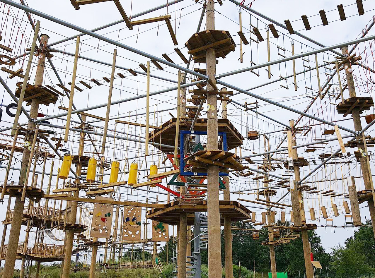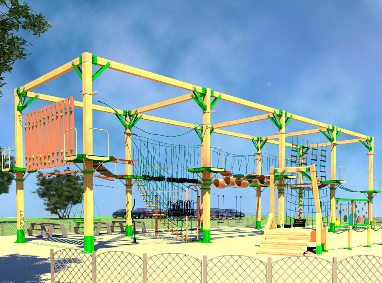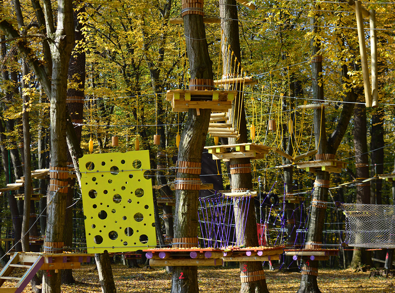 The high rope courses (or an adventure park) consists in a series of suspended elements (games) made out of steel cables and wood shapes, which can be climbed by people using a special safety equipment.